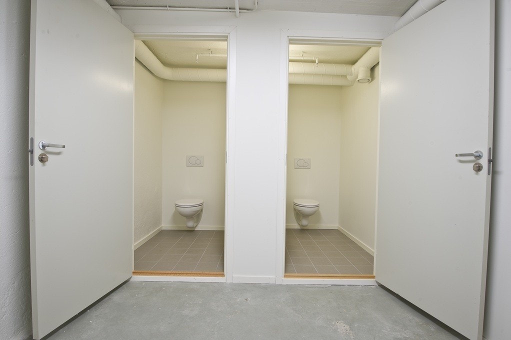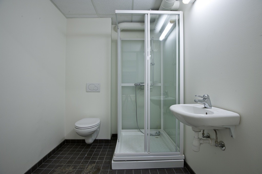 God takhøyde. Fliser på gulv. Betonggulv i kjeller. Toalett i begge etasjer. Kjøkkenfasiliteter i 1.etasje.